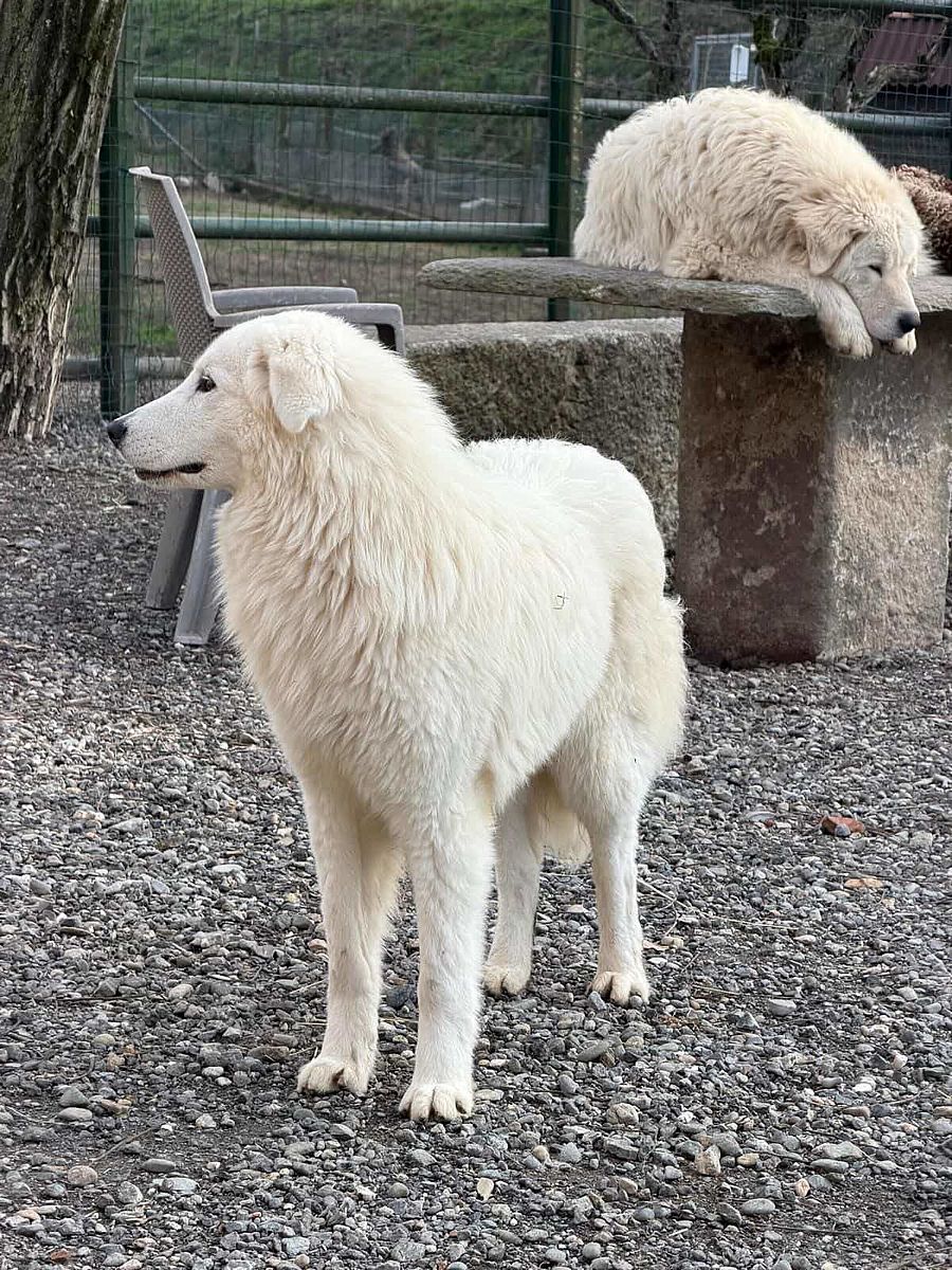 Bernadette ist eine junge Hündin, die typische Statur, ein ausgeglichenes Wesen und ein natürliches Talent zum Schutz von Land und Vieh vereint. Sie ist eine vielversprechende Hündin, die sich sowohl körperlich als auch charakterlich weiterentwickeln wird und bereits jetzt die Eigenschaften zeigt, die ein Züchter mit Sorgfalt und Verantwortung auswählt.