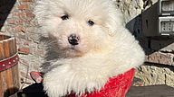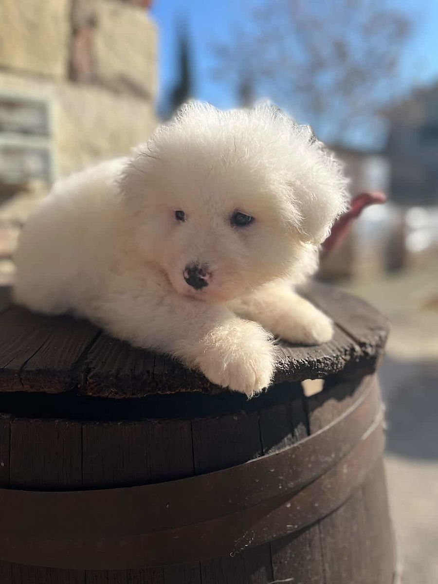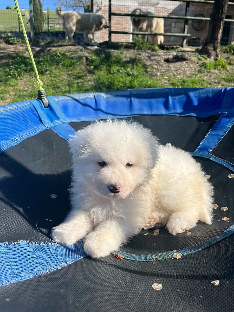 Pertama ist eine Maremmano-Abruzzese-Hündin mit einem bereits erstaunlich ausgeprägten Charakter. Ihr Name, der auf Indonesisch „Erste“ bedeutet, ist kein Zufall: Sie ist die Tochter von Mutter Prima und Vater Polignano und scheint dieses Erbe schon in den ersten Lebensmonaten mit Stolz zu tragen.