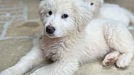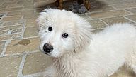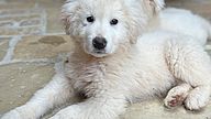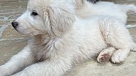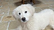 Furchtloser und entschlossener Welpe des Maremmano-Abruzzese-Schäferhundes